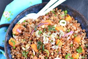 Le sarrasin utilisé ici - aussi appelé "" - se trouve sous forme de graines grillées, ce qui décuple sa saveur. Elles sont idéales en salade comme ici, mais aussi en "bouillie" ou encore en .