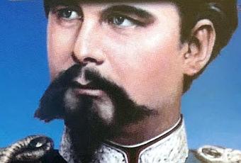 Carte postale publicitaire pour l'ouverture en l'an 2000 du Théâtre musical Neuschwanstein sur les bords du Forggensee. Le nouveau théâtre avait ouvert ses portes le 7 avril 2000 avec la première de la comédie musicale „Ludwig II - Sehnsucht nach dem Paradies“. Le carte postale montre le Roi Louis en maître d'oeuvre contemporain.