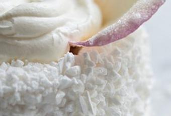 Une meringue légère entoure la crème chantilly à la rose blanche, à fois douce et onctueuse. Le jeu de texture en bouche est irrésistible, entre fondant et craquant. La crème de marron et les brisures de marrons glacés viennent réchauffer la structure de goût alors que le pamplemousse confit donne une touche fruitée et sucrée inattendu.