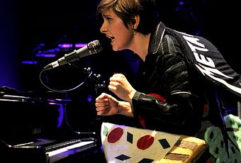 C'est un mini chien en peluche, aux yeux laser et à l'aboiement électronique, qui lance le coup d'envoi du show de la farfelue Klô Pelgag. Rapidement rejoint par les musiciens, le chien a réussi à chauffer la salle, dès les premières notes, surexcitée. C'est dans sa tenue à scratch que la québécoise entame le show, et " Insomnie ". Peut-être plus sage qu'au Pan Piper le mois dernier - pour le début du set, en tout cas -, la voix de la chanteuse en est d'autant plus juste et les tempi plus précis. Le groupe entier prête sa voix pour les dernières mesures de " Tunnel ", une fin a cappella et tout en harmonies fascinantes, fabuleux. Musicalement, le groupe est au top donc. Et au niveau de l'énergie et du brin de folie, on est pas mal non plus !
