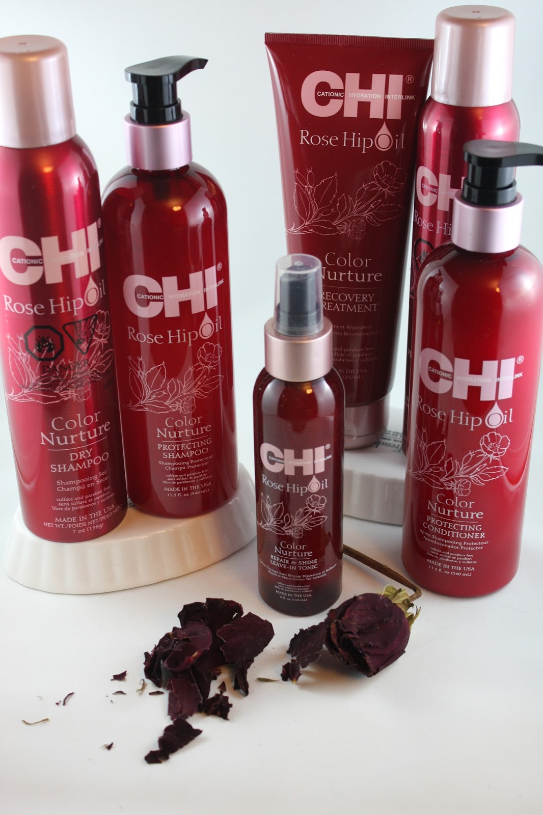 La gamme CHI Rose Hip Oil Color Nurture possède une protection UV, et utilise la soie comme un de ses ingrédients principaux, qui aide à renforcer et protéger les pores des cheveux… un ingrédient trop peu utilisé en coiffure !