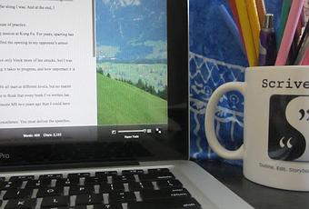 Phase 7 - Le second jet : Semaines 5 et 6Il avance plutôt bien ce second jet. Alors oui, c'est vrai, de façon un peu anarchique. Je profite de chaque parcelle de temps grignotée aux affres du quotidien pour me retrouver en tête à tête avec mon Macbook. Riche idée d'ailleurs d'avoir investi dans un portable car l'iMac de bureau est souvent squatté par la famille. Je peux également me laisser aller le soir à écrire depuis mon lit, ce qui n'est pas inconfortable du tout. Il m'arrive aussi d'écrire dans le train pour aller au boulot, sur un coin de table ou même dans une salle d'attente. Ceux qui prêchent pour un espace dédié à l'écriture, un lieu sanctifié où l'auteur doit s'isoler et se retrouver dans une sorte de transe créatrice en seront pour leurs frais. Je peux écrire partout, à n'importe quelle heure du jour et (surtout) de la nuit.