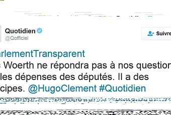 Eric Woerth ne répondra pas à nos questions sur les dépenses des députés. Il a des principes. @HugoClement #Quotidien pic.twitter.com/esGYu7vHYR