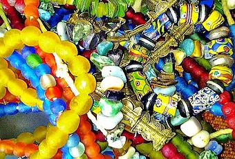 Perles en verres recyclé du Ghana, cristal, perles de Murano, perles de commerce de Bohême appelées aussi perles de mariage au Mali