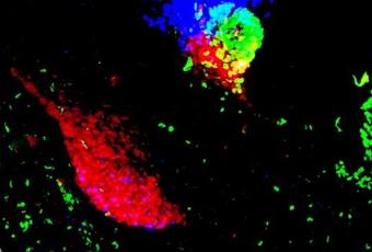 en rouge et en vert TGIF2 est actif dans le pancréas, mais pas dans le foie : l'expérience a d'abord consisté à faire perdre aux cellules du foie (en bleu sur visuel ) leurs propriétés hépatiques, c'est ce que les chercheurs appellent " la crise d'identité " ; Puis à acquérir les propriétés de cellules du pancréas ( sur visuel ) ; Puis à greffer ces cellules modifiées chez des souris diabétiques. Les chercheurs confirment qu'après la greffe, la glycémie des souris s'améliore, ce qui suggère que les cellules modifiées sont parvenues à remplacer les fonctions des cellules des îlots perdus. C'est donc une preuve de concept de l'efficacité possible des thérapies cellulaires pour les patients diabétiques.