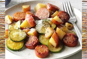 Saucisses aux pommes de terre et courgettes avec cookeo, un plat délicieux pour votre diner ou déjeuner.