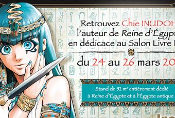 Chie INUDOH, auteure du manga Reine d’Égypte (Aoi Horus no Hitomi – Dansô no Joô no Monogatari), est l’invitée des éditions Ki-oon pour l’édition 2017 du salon Livre Paris (ex Salon du Livre de Paris) et sera présente pour des séances de dédicaces. Mais la mangaka fera aussi deux séances parisiennes supplémentaires, à la FNAC …