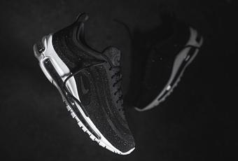 Le mois de mars vient seulement de débuter et les sorties s’annoncent importantes pour Nike qui prévoit déjà de mettre en vente sa Air Max 1 dans ses coloris OG en fin de semaine. En attendant la date fatidique du 26 mars, Nike a choisi de mettre en vente en exclusivité pour sa clientèle féminine une certaine Air Max 97 LX. La paire présente une empeigne entièrement noire habillée de cristaux censés être signés Swaroski donnant à la silhouette un aspect brillant. Cette construction est associée à une empeigne noire basée sur une semelle de Air Max 97 classique présentée en blanche.