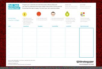 L’astuce consiste ici à chiffrer un maximum de choses, notamment pour les problèmes et bénéfices. Par exemple : « je passe 2 heures par jour à chercher des informations sur comment monter ma start-up » (une solution possible sera de proposer une série de lien ou de conseils à un seul endroit — c’est ce que fait Strategyzer). Le chiffrage peut être en temps ou en espèces sonnantes et trébuchantes. Mais c’est une étape indispensable par la suite pour déterminer le bénéfice client.