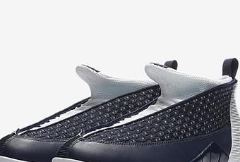 Dernier modèle imaginé par Tinker Hatfield, la Air Jordan 15 n’a jamais été portée sur les terrains par Michael Jordan mais conserve une forte aura dans le catalogue de la marque. Ce design unique inspiré des avions furtifs de l’US Air Force est aujourd’hui présenté dans un coloris Obisdian traduit par une teinte navy sur une empeigne en cuir tissée révélant également des notes de blanc. Le talon de la chaussure présente une teinte blanche sur sa construction striée si particulière disposant d’un branding 23/6/15 faisant référence au numéro de MJ ainsi qu’à son nombre de championnats remporté.