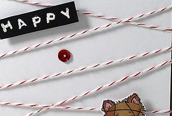 Hello, je vous propose aujourd’hui une petite carte que j’ai réalisée il y a quelques temps pour un défi que je proposais sur le forum A vos cartes ! je demandais au filles d’utiliser de la ficelle autrement qu’en faisant un noeud… je souhaitais qu’elle fasse partie des éléments principaux de la carte.