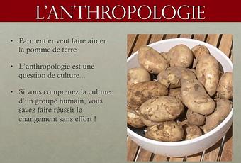 Pourquoi s'intéresser à l'anthropologie ? Pour être maître de l'univers ! Les comportements collectifs sont guidés par des règles inconscientes. L'objet de l'anthropologie est de les étudier. Comprendre ces règles permet donc de faire bouger une population comme un seul homme. C'est ce qu'a fait Parmentier. Car, l'anthropologie c'est facile.