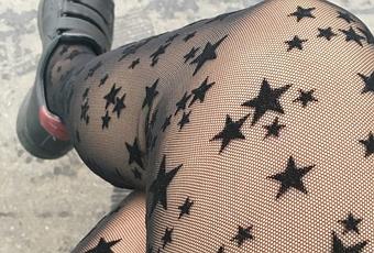 Alors j’ai attendu les soldes et là j’ai craqué ! Avec une réduction de 50%, je ne suis pas repartie avec une mais deux paires de collants : ceux qui m’avaient fait rêver avec des petites étoiles noires sur un collant peu épais et une paire de collants opaque avec des écussons pop au-dessus des chevilles.