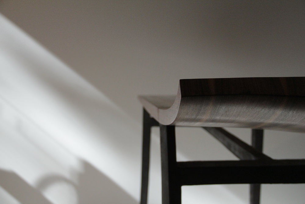 Plus qu’une table, Louise se présente tel un bureau minimaliste de noyer. « Elle cherche à lier en harmonie un matériau composite commun et une essence naturelle noble. C’est en jouant subtilement sur ce contraste que j’ai souhaité créer un meuble qui propose un véritable dialogue entre les matières. L’enjeu de cette création est de réveiller le plaisir de l’écriture tombé en désuétude à l’ère du numérique. »