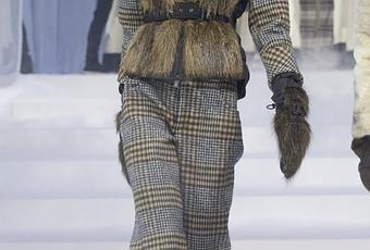 Une fois quittées les pistes, l’après-ski de Moncler Grenoble se décline en ce sens et sur une palette de nuances profondes et apaisantes, clairement naturelles: camel, havane et chocolat. On ressort les trames graphiques des Prince de Galles et des pieds-de-poule au parfum d’autrefois. On se souvient des inspirations stylistiques osées et de la vocation géométrique accentuée d’un certain tayloring masculin des années 60 et de la décennie suivante. Nuances dégradées et modèles linéaires signent les chemises masculines, les blousons et les jupes. Outre des laines, les matières s’enrichissent des textures de différents tissus de production japonaise, plus secs et légers, démontés et reconstruits sur le métier avec un procédé manuel complexe, mais aussi de la présence du velours de coton plein ou côtelé. La maille aussi s’amplifie, avec des pulls souvent tricotés épais fait main et des broderies all over précieusement finies au crochet.