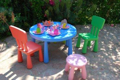 C'est à dire courir de la chambre de Scarlett jusqu'au fond du jardin en hurlant de tout leurs poumons parceque soit disant le méchant prince Nishal voulait attaquer les filles... Le tout en allers-retours non stop pendant 15 minutes, alors que la chaleur devenait inuspportable.... Moi je faisais le relais buvette pour réhydrater les sauvages, à côté de l'ambulance prête au cas où à côté de la très dangereuse marche de notre porte fenêtre que par miracle les gazelles en robes de princesse ont enjambé sans trébucher....