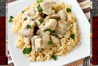 Poulet au champignons creme fraîche et riz avec cookeo, un délicieux plat de dîner pour toute la famille.