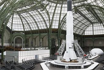 Qui mieux que Chanel pour ne pas avoir de limite et pour reconstituer un centre de lancement de fusée et de même carrément procéder à un lancé de fusée à la fin de son défilé prêt-à-porter automne/hiver 2017 en plein coeur du Grand Palais.ET dieu sait que Karl Lagerfeld va jusqu'au bout de ses envies avec de l'imprimé cosmonaute sur les robes et les sweat-shirt, une collection masculine crème et blanche de toute beauté (et avec en guise de sac bandoulière le dernier né de la Maison de la Rue Cambon en hommage à l'anniversaire de Gabrielle Chanel cette année, le Gabrielle), des cheveux mis en arrière et encerclés d'un bandeau de perles et de strass de toute beauté, et biensure devant un front raw six étoiles, une collection de tenues de soir noires, strass et voile dehors pour une allure toujours aussi maitrisée et pointue, toujours dans la modernité.Une mise en orbite réussie une fois encore...