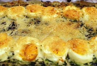 - Poser les demi oeufs sur le mélange épinard-béchamel.
