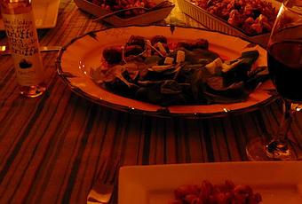 j'en ai profité, et après avoir fait des fettucine aux champignons qui ont plu à l'unanimité, j'ai expérimenté une autre façon de les agencer à des pâtes, m'inspirant d'une recette de Cuisine la bine