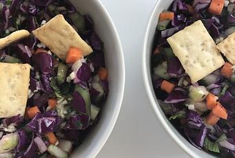 Aujourd’hui ça va faire CRAC ! avec cette belle salade toute colorée qui porte bien son nom. Que des légumes croquants dans cette salade croquante au chou rouge, concombre et carotte inspirée de la cuisine libanaise.
