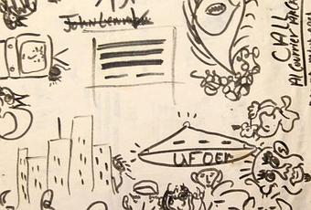 Propriété du musicien Jesse Davies, guitariste sur certains des morceaux de l'album, ces dessins sont assez énigmatiques, et parmi les petites notes écrites sur la pochette figurent les noms de 4 personnes qui comptaient pour John à cette époque : Yoko, May Pang, Julian et lui.