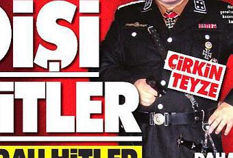 « Une Hitler au féminin », titre Günes avec une croix gammée, le mot-dièse #FrauHitler, mais aussi la mention « la Tante moche » barrant le photomontage d’Angela Merkel qui occupe trois quarts de la « une » du journal. (source)