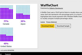 Power BI vous offre la possibilité de créer une visualisation en gaufre. Celle-ci n’est toutefois pas disponible dans les visualisations intégrées dans Power BI. Elle est plutôt disponible à partir de la galerie d’éléments visuels personnalisés.