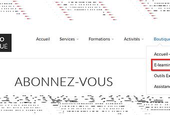 Dans un premier temps, pour procéder à l’achat d’une formation en ligne, cliquez sur le menu déroulant du menu Boutique et choisissez l’option E-learning.
