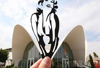 Dans les artistes papier voici le photographe Rich McCor (alias Paperboyo), basé à Londres, qui parcourant le monde entier transforme des repères de célèbres bâtiments et autres attractions touristiques, en y ajoutant au premier plan des découpes de papier noir...