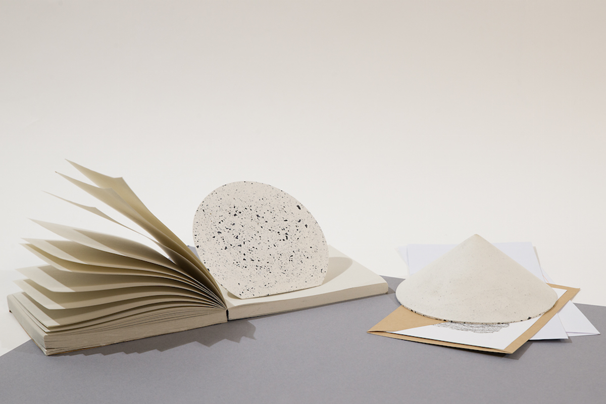Trois petits objets à disséminer chez soi composent la collection appelée Suie : un presse-papier, un diffuseur d’huiles essentielles et un porte-carte. Sous leur forme conique et leur éclats de charbon qui se révèlent, les objets de la collection Suie rappellent les crassiers de Saint-Etienne.