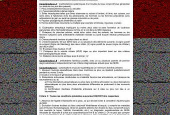 En plus de fournir une nouvelle classification, qui tient compte des informations que la science nous a donné depuis 20 ans (surtout grâce à la génétique, mais aussi avec la clinique), cette publication nous offre de nouveaux critères diagnostiques pour chacun des syndromes d’Ehlers-Danlos, ainsi qu’une nouvelle catégorie de problèmes reliés à l’hypermobilité, mais qui ne sont pas liés au SED.