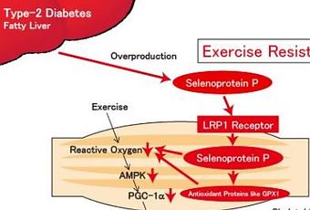 La sélénoprotéine P , une hépatokine ou protéine produite dans et sécrétée par le foie, est mise en exergue, par l'équipe japonaise pour expliquer cette absence de réponse à l'exercice. Sa concentration est élevée dans le sang des patients diabétiques de type 2, or l'on sait que la protéine augmente la résistance à l'insuline et induit une augmentation de la glycémie. Si jusque-là les effets de la sélénoprotéine Psur la promotion de la santé par l'exercice physique n'étaient pas clairs, l'équipe montre in vivo, chez des souris, et in vitro sur des cultures de cellules musculaires et chez l'Homme, que la protéine inhibe les bénéfices de l'exercice.