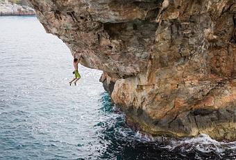 Alban Levier a travaillé cet automne l’incroyable ligne en DWS de Chris Sharma, « Es Pontas » (Majorque). A la différence de Jernej Kruder, il n’a pas fait la croix. Et pourtant, pour tout passionné de grimpe, la vidéo de Gilles Puyfagès (gillespuyfages.com) est un régal. Ca parle de grimpe pour de vrai, ça vit la grimpe simplement mais intensément, pour un placement de produit minimum (il faut dire qu’en grimpant en maillot de bain c’est pas facile de montrer le matos!).