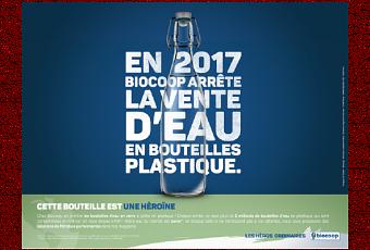 Depuis le 1er janvier 2017, Biocoop s’est engagé dans une révolution contre les bouteilles d’eau en plastique en les supprimant de ses magasins. Dans une campagne de communication, le premier réseau de magasins bio en France, vise à sensibiliser le consommateur à sa consommation d’eau. Cette opération, judicieusement baptisée « Ma-cons-eau », a été mise en place par l’agence Hungry and Foolish.