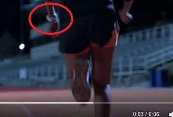 Reste qu'on voit bien une montre au bracelet blanc sur le poignet gauche de cette runneuse.