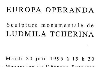 Danseuse étoile et chorégraphe des Grands Ballets de Monte-Carlo à l'âge de quinze ans, Ludmila Tcherina fut la plus jeune étoile de l'histoire de la danse. Elle danse tout le répertoire classique dans les théâtres lyriques du monde entier, et notamment à l'Opéra de Paris, au Bolchoï de Moscou, au Théâtre Kirov de Leningrad, à la Scala de Milan ou au Metropolitan Opéra de New York. Lifar, Balanchine, Petit ou Béjart créent avec elle de nombreux ballets. Au théâtre, après À la mémoire d'un héros de Lifar, sur une musique de Beethoven, où elle interprétait Bonaparte, c'est à l'Opéra de Paris, dans le Martyre de saint Sébastien de d'Annunzio et Debussy, qu'elle donne, dans le rôle-titre, toute sa mesure, non seulement comme danseuse, mais aussi comme mime et tragédienne. Son interprétation de Jeanne au Bûcher de Claudel et Honegger, au Théâtre des Champs-Elysées, a été tout aussi marquante. Convaincue de la globalité de la création artistique, elle conçoit l'idée d'un Théâtre Total et fonde sa propre compagnie. Cette conception trouve son épanouissement aussi bien dans le ballet-drame de Raymond Rouleau, les Amants de Teruel, que dans le Feu aux poudres, unique ballet signé par Jean Renoir Pour le cinéma, Ludmila Tcherina tourne dix-huit films ; elle s'impose particulièrement aux côtés de Louis Jouvet dans Un revenant puis dans les Chaussons rouges, et dans les Contes d'Hoffmann, pour lequel elle obtient un oscar d'interprétation aux Etats-Unis. Elle porte les Amants de Teruel de la scène à l'écran. Ce film, sélectionné officiellement, représente la France au Festival de Cannes de 1962 et est couronné à New York par le Prix de la Critique. Ludmila Tcherina tourne également de nombreux films de télévision, parmi lesquels : Salomé, comme danseuse et tragédienne, la Dame aux camélias, comme comédienne, et la Reine de Saba, comme danseuse et tragédienne, rôle pour lequel elle a obtenu le prix d'interprétation au Festival de Monte-Carlo. Ecrivain, elle a publié deux romans aux Editions Albin Michel : l'Amour au miroir, paru en 1983, évoquant le monde de la danse, qui fut un best-seller, et la Femme à l'envers, sorte d'opéra barbare, en 1986. Peintre et sculpteur depuis sa jeunesse, elle expose dès les années 60 dans toutes les grandes capitales. A Paris, son exposition à l'Hôtel de Sully, parrainée par André Malraux, et l'exposition autour de son Dynamogramme où elle alliait peinture et danse au Centre National Georges Pompidou, ont fait découvrir sa théorie de l'Art Total dont tous les aspects naissent du souffle et du mouvement. En 1991, parrainée par la Fondation de l'Europe des Sciences et des Cultures, Ludmila Tcherina conçoit et réalise Europe à Coeur, une sculpture monumentale officiellement choisie par la Communauté Européenne pour symboliser l'Europe unie. Dévoilée au Musée d'Art Moderne de la Ville de Paris en mars 1992 puis exposée devant le Pavillon Européen à l'Exposition universelle de Séville, elle a trouvé sa place définitive au Parlement Européen à Strasbourg au printemps 1994. En 1994, elle conçoit et réalise EUROPA OPERANDA pour Eurotunnel. Le prototype a été présenté à Sa Majesté Elisabeth II, Reine du Royaume Uni, et à Monsieur François MITTERRAND, Président de la République Française, le 6 mai à l'occasion de l'inauguration du Tunnel sous la Manche. Cette sculpture monumentale en bronze trouvera sa place définitive sur le Terminal Français d'Eurotunnel pour symboliser l'esprit de création du Tunnel sous la Manche et la construction européenne.