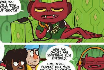 Et donc tout cela au milieu d’intrigues surnaturelles, avec des fantômes, des démons, un chien sorcier et une mystérieuse figure masquée qui complote dans l’ombre. C’est juste que les personnages changent un peu des héros dont on a l’habitude. Et comme Hamish Steele a bien pris soin de détailler leur personnalité voire leur parcours, on n’a jamais l’impression d’un assemblage de personnages un peu artificiel, mais qui permettrait de cocher le plus de cases possibles niveau diversité. L’ensemble sonne au contraire très authentique.