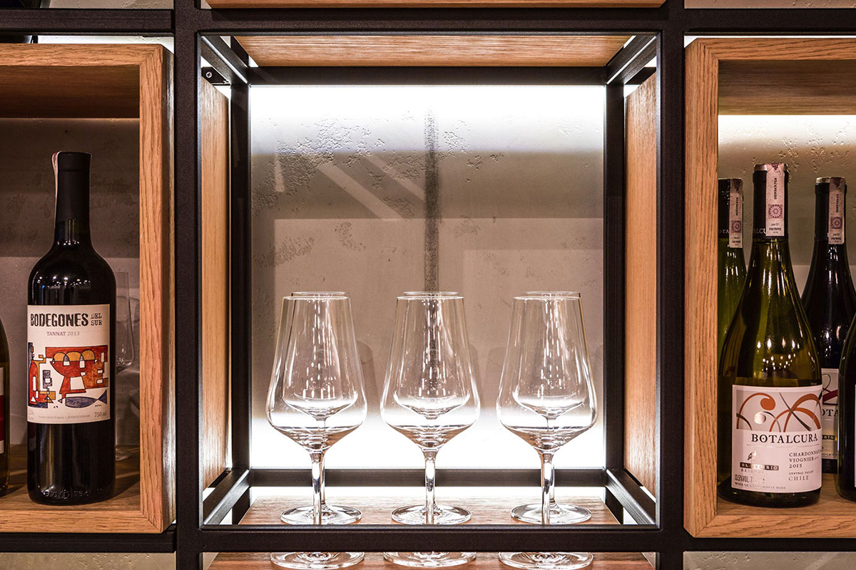 Le studio de design a proposé pour Furatex Culinary Academy une cuisine exposée qui est comme une scène surmontée d’un treillis noir et d’un équipement multimédia complet. Grâce aux téléviseurs en hauteur et à l’écran rétractable, les clients peuvent observer avec précision la préparation du repas exécuté par le chef.