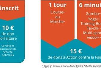 Le principe de ce challenge est le suivant: sur une boucle d'un kilomètre pour la course et de 650m pour la marche, ou toutes les 6 minutes d'activités (zumba..), 15 euros de dons sont reversés par l'entreprise.