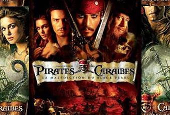 Pirates des Caraïbes : La malédiction du Black Pearl (Pirates of the Caribbean : the Curse of the Black Pearl). 2 heures 20. États-Unis. Fantastique - Aventures - Comédie. Sortie en France le 13 août 2003 (le 9 juillet 2003 aux États-Unis). Réalisé par Gore Verbinski avec Johnny Depp, Keira Knightley, Orlando Bloom, Geoffrey Rush, Jack Davenport, Jonathan Pryce, Lee Arenberg, Mackenzie Crook, Brye Cooper, Michael Berry, Damian O'Hare, Angus Barnett, David Bailie, Isaac C. Singleton, Kevin McNally, Zoe Saldana... Dans la mer des Caraïbes, au XVIIe siècle, Jack Sparrow, flibustier gentleman, voit sa vie idylle basculer le jour où son ennemi, le perfide capitaine Barbossa, lui vole son bateau, le Black Pearl, puis attaque la ville de Port Royal, enlevant au passage la très belle fille du gouverneur, Elizabeth Swann. L'ami d'enfance de celle-ci, Will Turner, se joint à Jack pour se lancer aux trousses du capitaine.