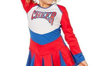 Ce deguisement enfant est composé de la robe uniquement. Vous trouverez des pompons un peu plus bas en rouge, en blanc ou en bleu pour aller avec. Cette robe avec inscription "cheer" sera très mignonne avec une paire de converse.