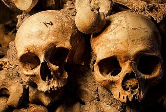 Catacombes de Paris : ossuaire, détail d’une hague d’ossements. Paris, musée Carnavalet.