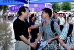 早上八點,校黨委書記陳希、校黨委副書記陳旭等就冒雨來到 迎新地點綜合體育館和網球場,問候在那裏辛苦工作的迎新工作人員,對他們的辛勤工作表示感謝。陳希詳細了解了研究生的招生情況和報到情況,並與前來報到的新生親切交談。