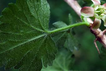 Ribes uva-crispa (Groseillier à maquereau) : fleurs solitaires ou par 2, portées par un pédoncule court et feuillé, grosses baies verdâtres ovoïdes couvertes de poils raides (forêts fraîches, forêts alluviales, forêts de ravins froids).