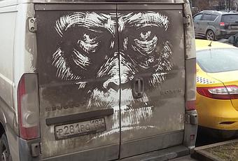 En ce début de printemps, certaines voitures sales de Moscou se transforment en œuvres d’art. Pour l’illustrateur Nikita Golubev (aka ProBoyNick) la crasse devient un pigment sombre que ce jeune artiste utilise pour faire apparaître son inspiration. Du dos d’une camionnette à une portière latérale, Nikita Golubev va peut-être faire hésiter les propriétaires des ces véhicules à passer dans une station de lavage.