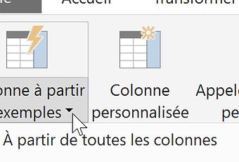 Il est possible d’ajouter des colonnes d’exemples à partir de toutes les colonnes de la table sous-jacente ou à partir de certaines colonnes, que vous aurez au préalable sélectionnées. Ci-dessous, j’ai sélectionné les colonnes NoMagasin et NoBannière et j’ai cliqué sur “Colonnes à partir d’exemples” puis sur “À partir de la sélection”.