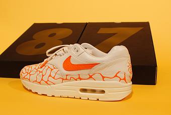 Chaque année les Pays-Bas célèbre la monarchie, le jour du roi “Koningsdag” aura lieu le 27 Avril prochain. L’occasion était trop belle, le Studio Quint a crée une édition spéciale peinte à la main rassemblant le King’s Day et le 30ème anniversaire de la AM1 formant ainsi le pack Nike Air Max 1 King of The Day. Pour ce faire ils ont utilisé des basiques, une base full white et l’autre full black sur lesquelles on été appliquées des ondulations inspirées par celles des canaux d’Amsterdam. Les courbes sont oranges brillant en hommage à Huis van Oranje-Nassau, elles sont principalement présentent sur l’avant et se prolonge vers l’arrière via le mudgard. Le Swoosh bénéficie également de cette couleur emblématique de la Hollande. Pour finir le panneau du talon voit son logo embossé “Nike Air” recouvert d’un côté par une couronne et de l’autre par le logo du Studio Quint. L’ensemble bénéficie d’un packaging original, chaque paire à sa boite noire avec un 8 pour l’une et un 7 pour l’autre, le tout rassemblé dans une box orange.