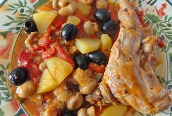 Source : Fiche d'un magazine ... j'ai gardé l'idée de départ (lapin aux tomates, olives et romarin) et j'ai composé cette recette à ma façon.