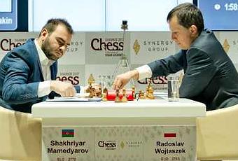 Lors de la ronde 8 du Shamkir Chess 2017, Radoslaw Wojtaszek gagne dans un fauteuil face à Shakhriyar Mamedyarov - Photo © site officiel